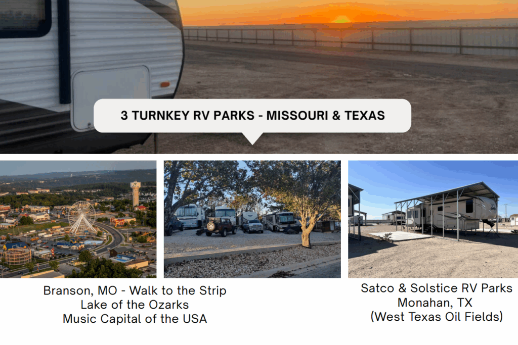 For Sale By Owner – 3 RV Park Portfolio in Texas and Missouri. Email jhartman@scs.rent or call/text 303-999-1924.